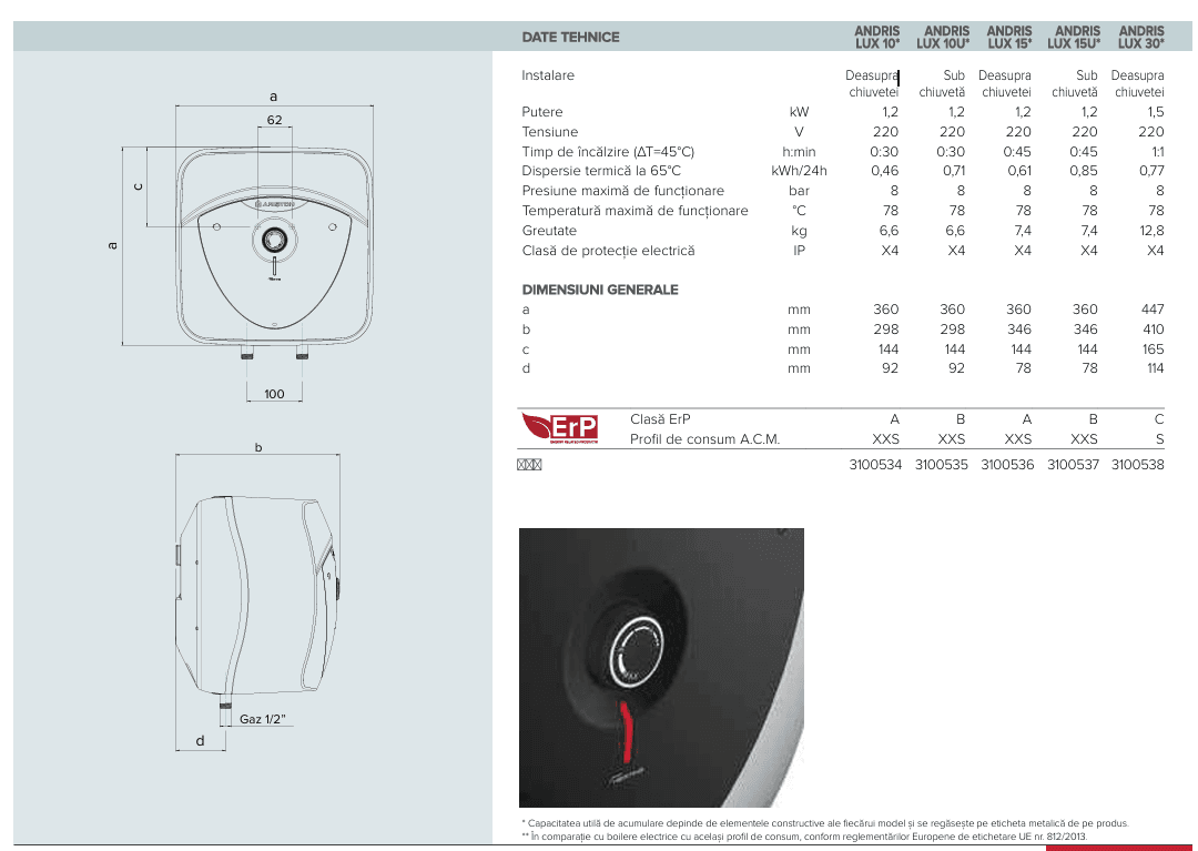 Este un incalzitor de apă compact, cu dimensiuni reduse , dar care are capacitatea de a incălzi pană la 30l de apă.