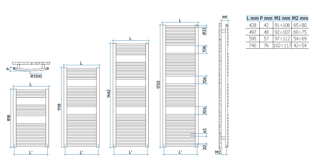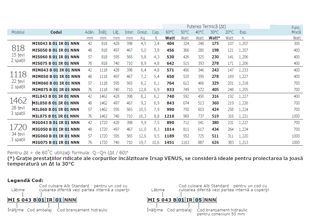 | Inaltime radiator de baie | 818 mm, 1118 mm, 1462 mm, 1720 mm |